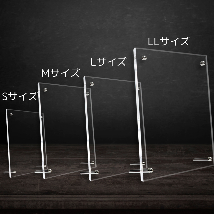 スタンドタイプ・壁掛けタイプ・オーダーメイド対応のアクリルフォトフレームを、L版・2L版・A4など複数サイズでご紹介します。結婚祝い・結婚式・記念日・ギフトにも最適です。